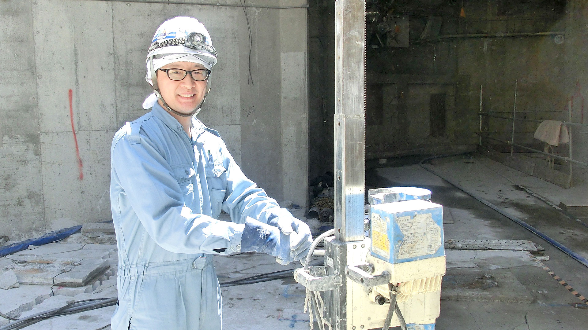 先日も、コンクリートに穴をあける工事に立ち会った新人が「こんなに静かにコンクリって切れちゃうんですね!」って驚いていました。